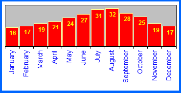 The Costa Blanca enjoys a typical Mediterranean climate, with cool sea breezes in summer and protection by surrounding mountains against the cold North winds in winter. The area averages nearly 3,000 hours of sunshine each year with an average of 325 sunny days each year – average daytime temperature in July and August is in the high twenties.